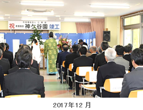 救護施設神ケ谷園新築工事に係る安全祈願のため起工式が工事施行業者の中村組様の主幹により厳粛に執り行われました。